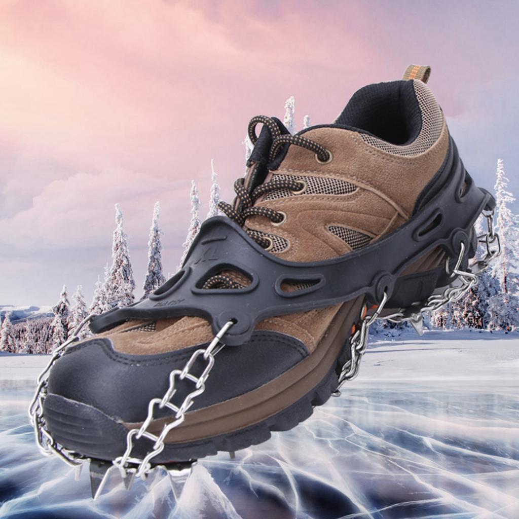 A Pair 19 Teeth Outdoor Climbing Ice Crampons Stainless Steel Welding Anti Slip Shoe Snow Grips Spikes Cleats(XL 19