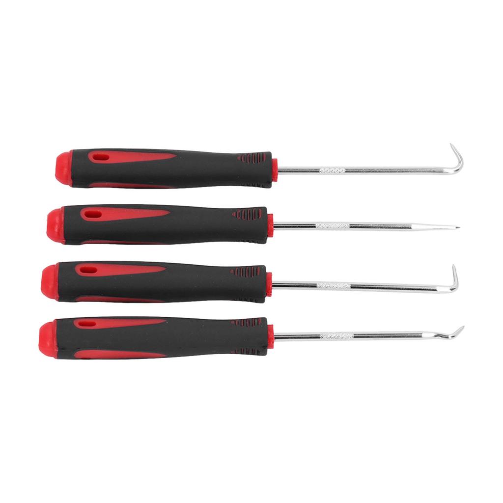 1. [4 Different Types of Hooks] The pick and hook set includes 4 different types of hooks, 45 degrees hooks, 90 degrees hooks, and pointed hooks, with a length of 16 cm for different purposes.