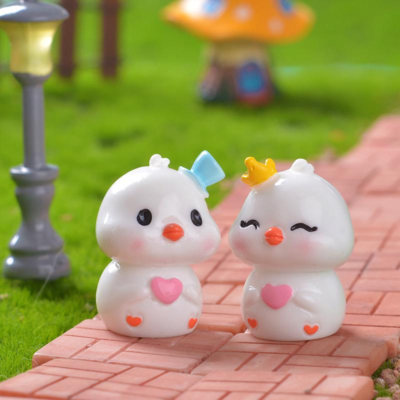 Mini Cute Cartoon Tie Chick Landscape Ornament Dollhouse Miniature Decoration Resin Desktop Decoration Accessories