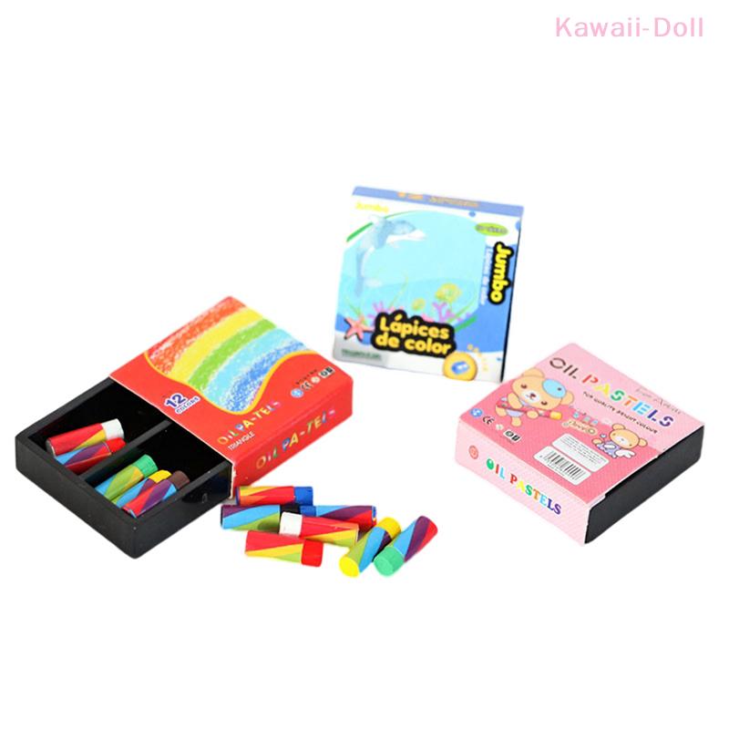 1Set Miniature Crayon Color Pencil Box Model 1:12 Doll House Decor Accessories Kids Pretend Play Toy