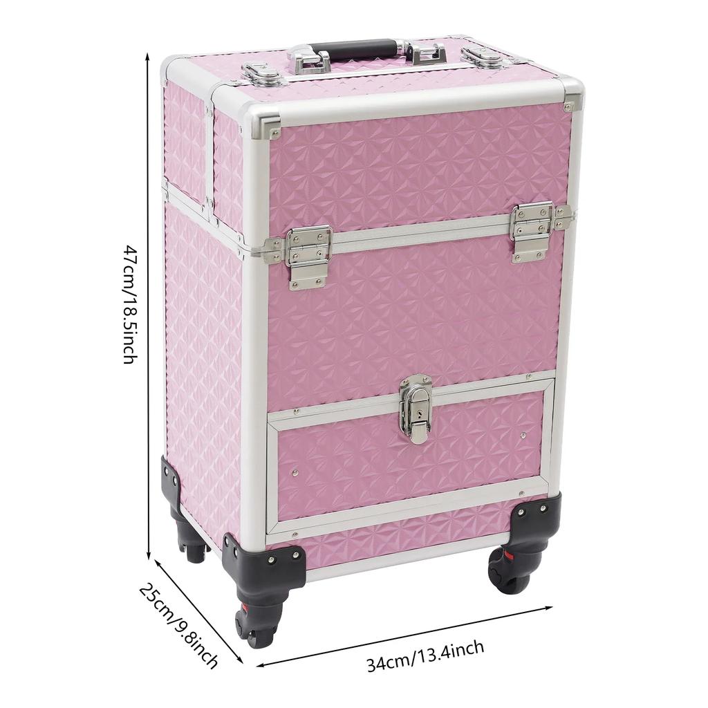 44.09lbs Rolling Nail Case Wheeled Manicure Storage Case Polish Organizer Professional Makeup Trolley for Cosmetologist Stylist