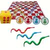 Portable PVC Snake Ladder Chessboard Game Mat - Includes Inflatable Snakes & Dice Outdoor Travel Board Game for Family Fun