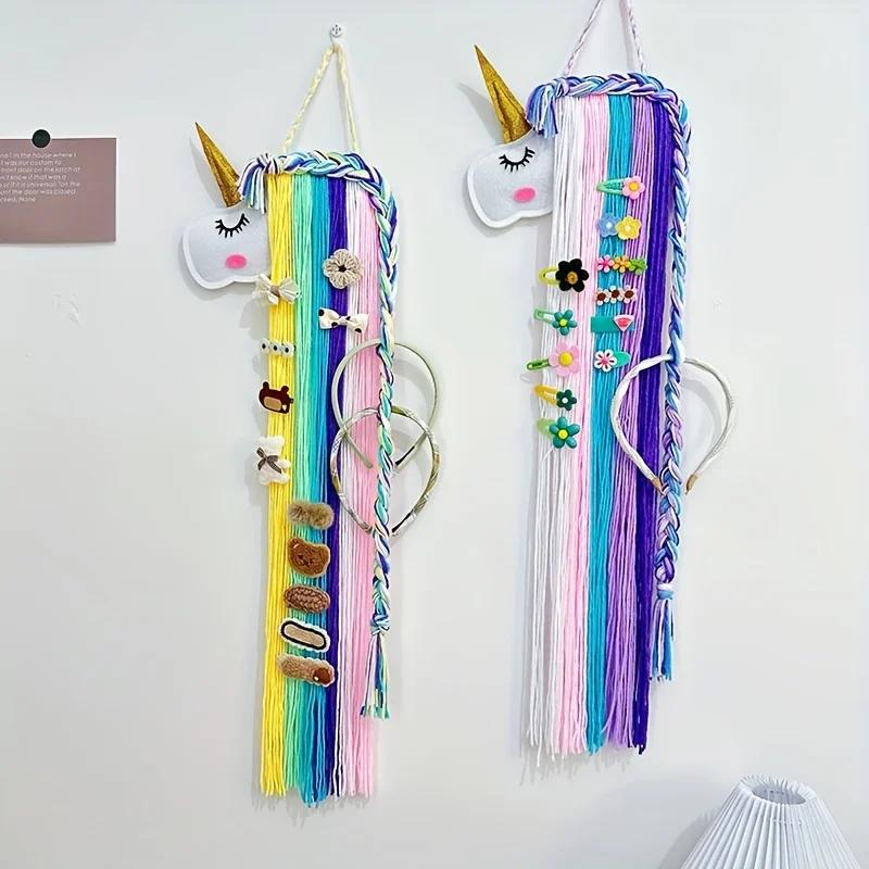 Handmade Boho Unicorn Wall Hanging Organizer - Felt Animal Head Hair Accessory Storage Strip, Charming Room Decor for Girls