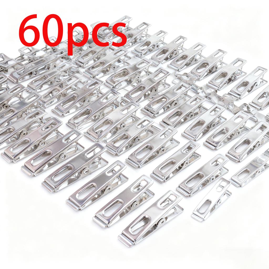 60Pcs Heavy Duty Stainless Steel Clothespins Rustproof Non Slip Laundry Clips Durable Metal Clothes Pins Indoor Outdoor Use