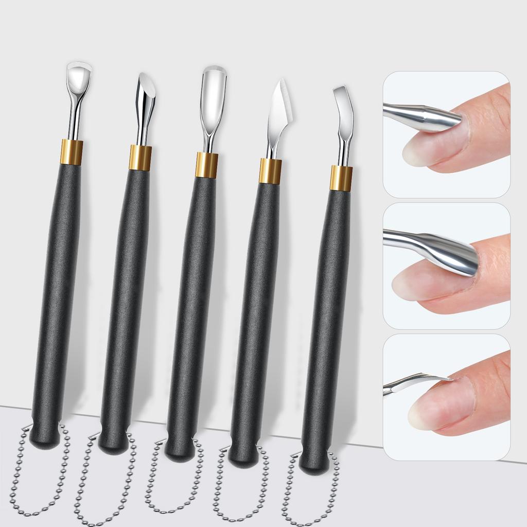 Black Handle Hook Type Cuticle Pusher Nail Polish Remover Gel Scraper Stainless Steel Clean Manicure Tool for Nail Art