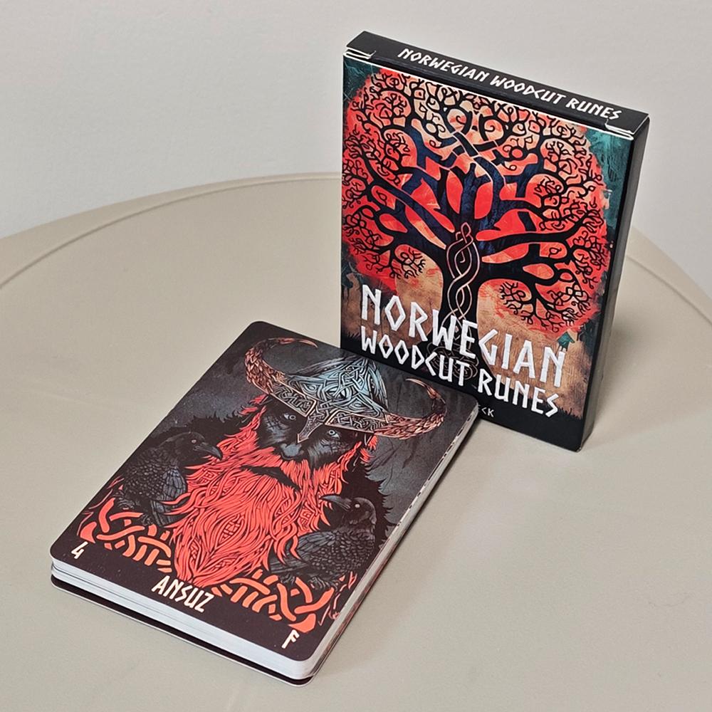 10.4*7.3cm Norwegian Woodcut Runes Deck 24 Cards Oracle Deck Elder Futhark Runes