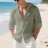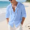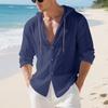 Spring Autumn Vintage Cotton Linen Hooded Shirt Male Long Sleeve Casual Fashion Blouse Men Solid Cardigan Top