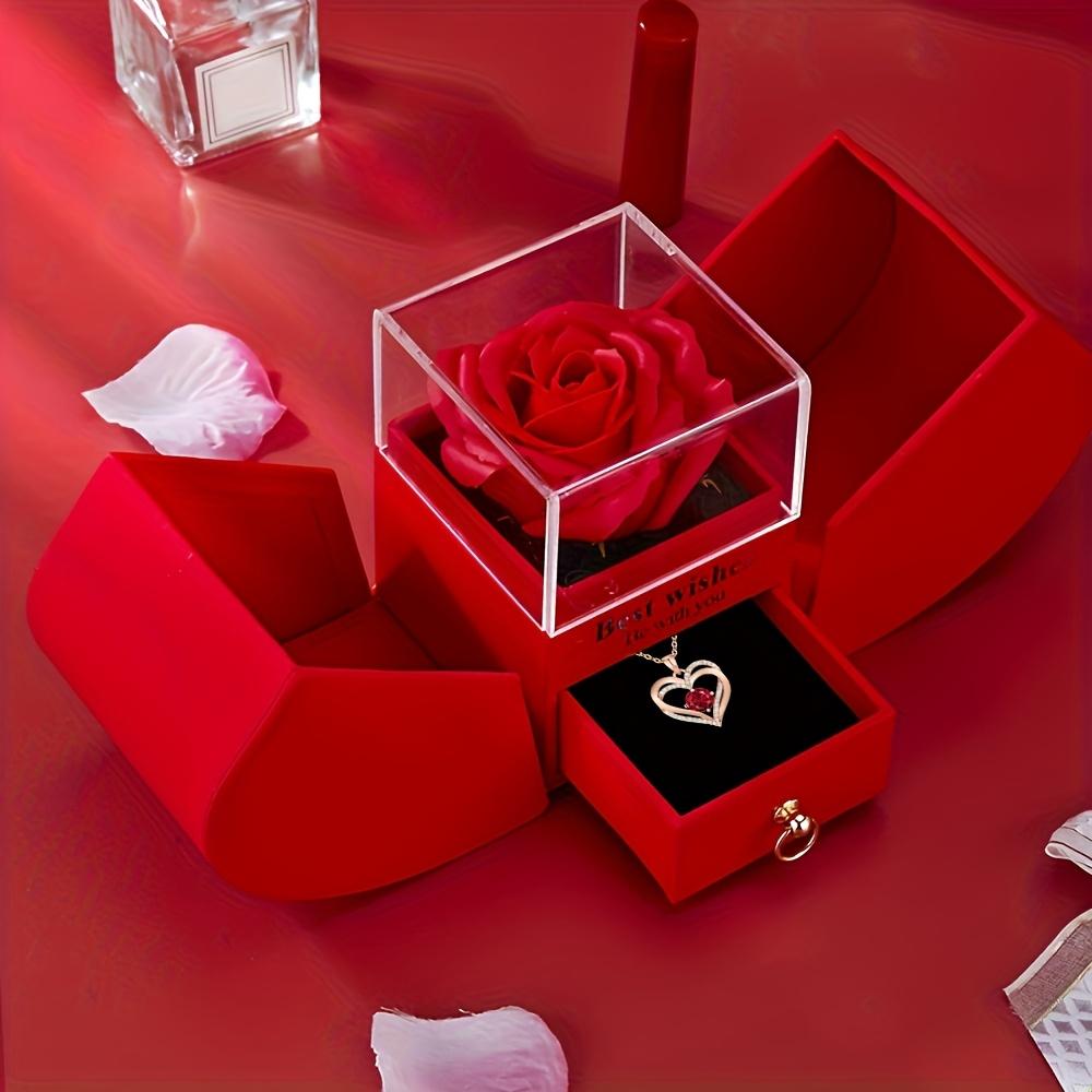 Elegant 100-Language "I Love You" Necklace with Red Rose & Heart Pendant In Luxury Gift Box - Valentine's Day, Mother's Day