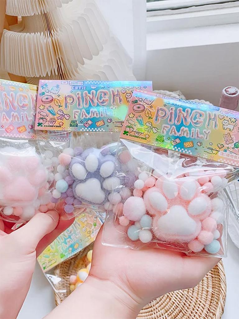 TPR Cat's Paw with Fur Stress Relief Squishy Toy Fidget Toy Mini Kawaii Plush Cat Paw Silicone Small Cat Paw Cute Pink Cat Foot