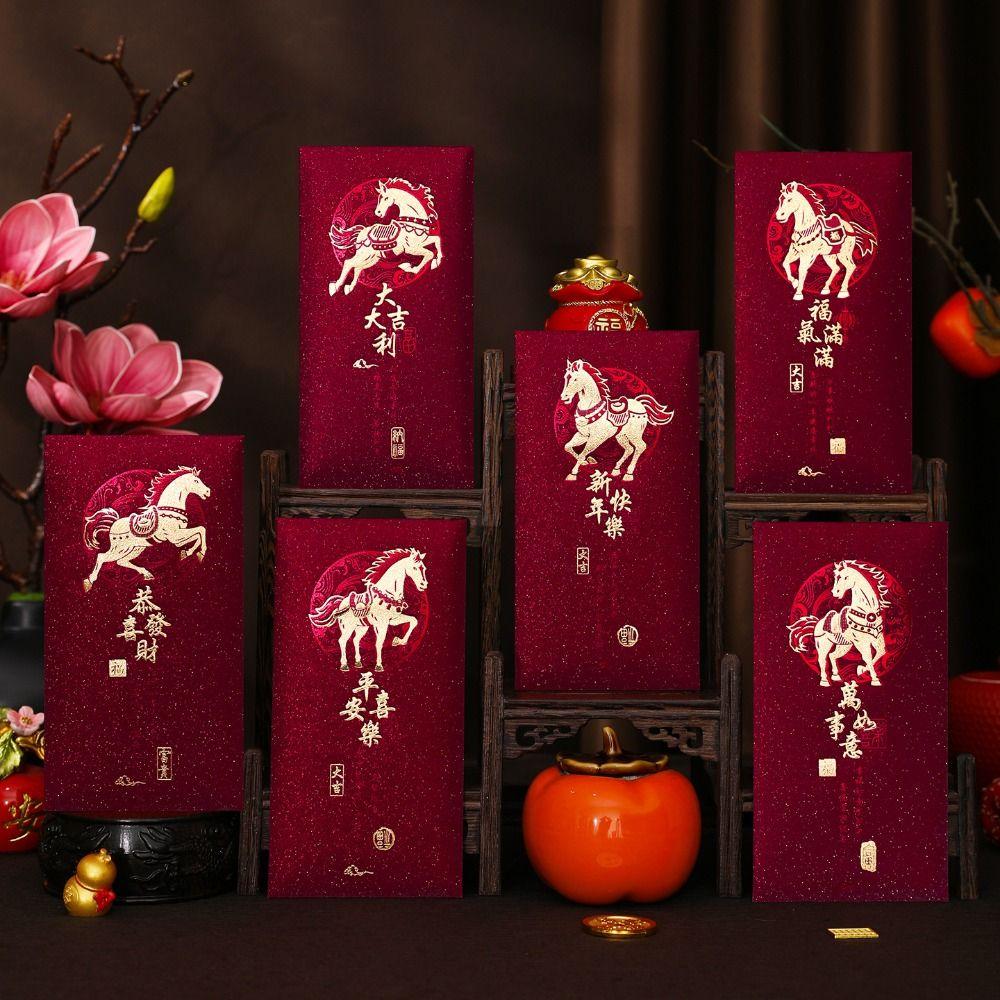 6Pcs Chinese Style Red Envelopes Gold Foil Design 2026 Luck Money Bag Year of The Horse