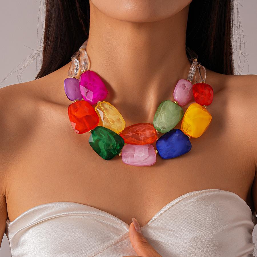 Irregular Acrylic Beaded Double-layer Necklace for Women Exaggerated Clavicle Chain Holiday Accessories