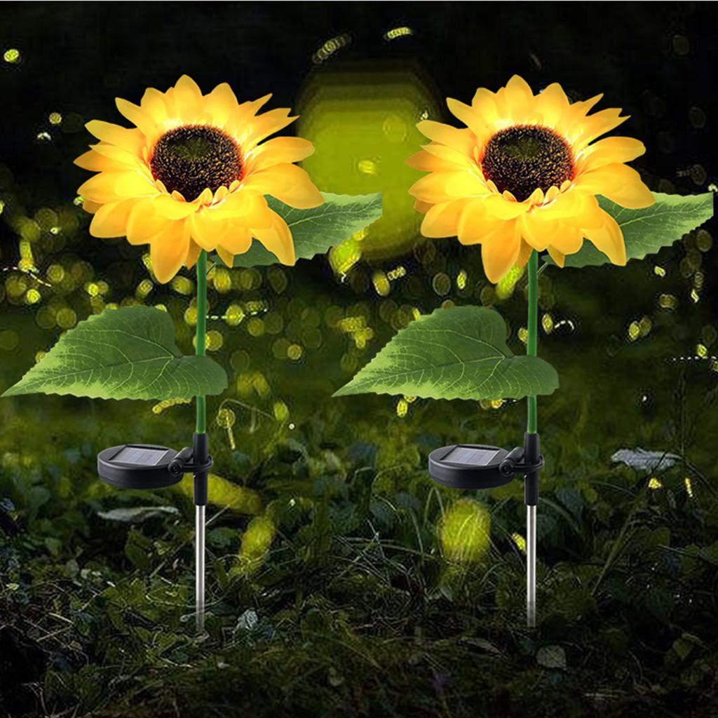 2Pack Sunflower Shape LED Solar Lights Outdoor Garden Stake Lights Warm White Decorative Lamp Waterproof Auto On Off