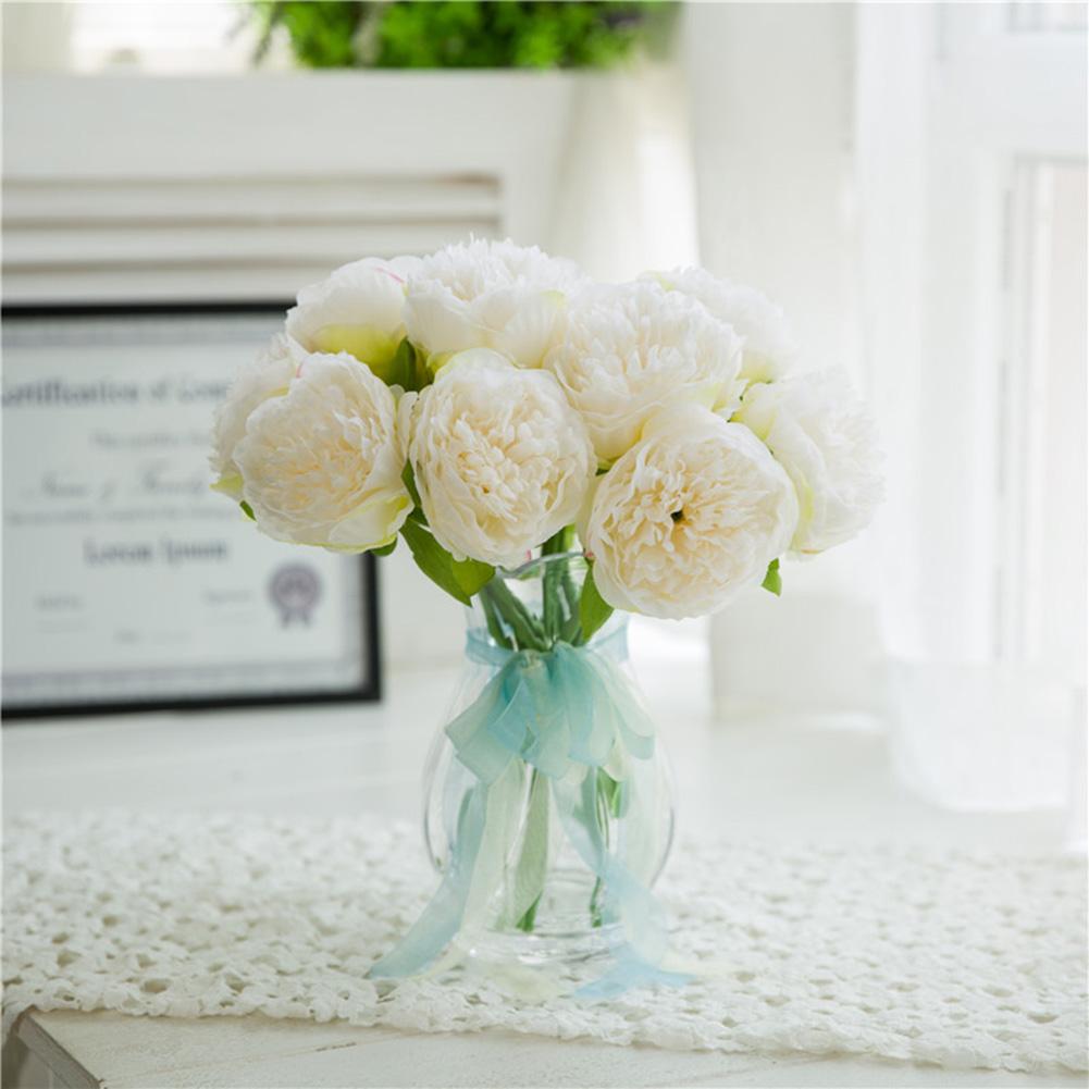 Artificial Flower Peony Fake Peony Artificial Peony Silk Peony Wedding Bouquet(White)