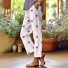 Women's Cotton Linen Pants Printing Summer Wide Leg Casual Loose Drawstring High Waist Palazzo Pants Trousers With Pockets