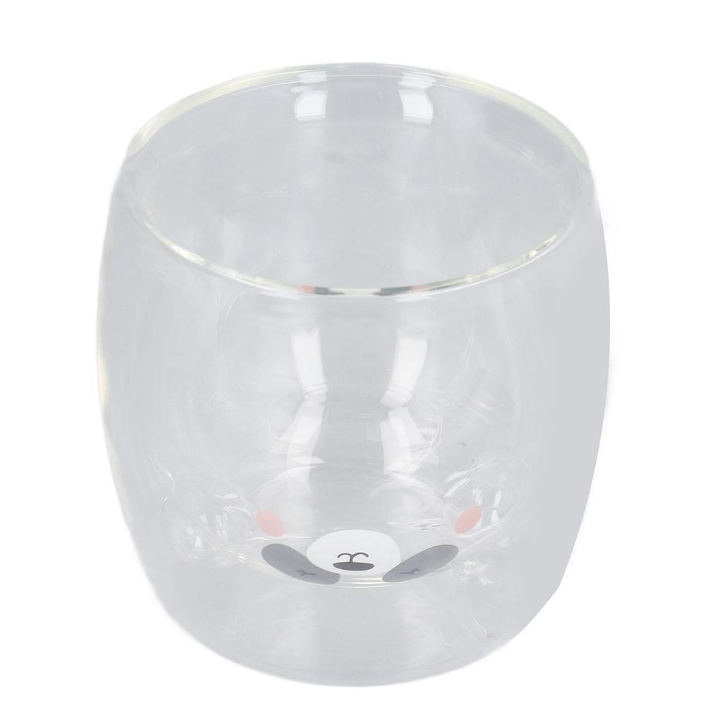 Cute Double Wall Glass Mug 250ML Heat Resistant Bear Appearance Coffee Glass Cup for Home Office Library Gifts Smile