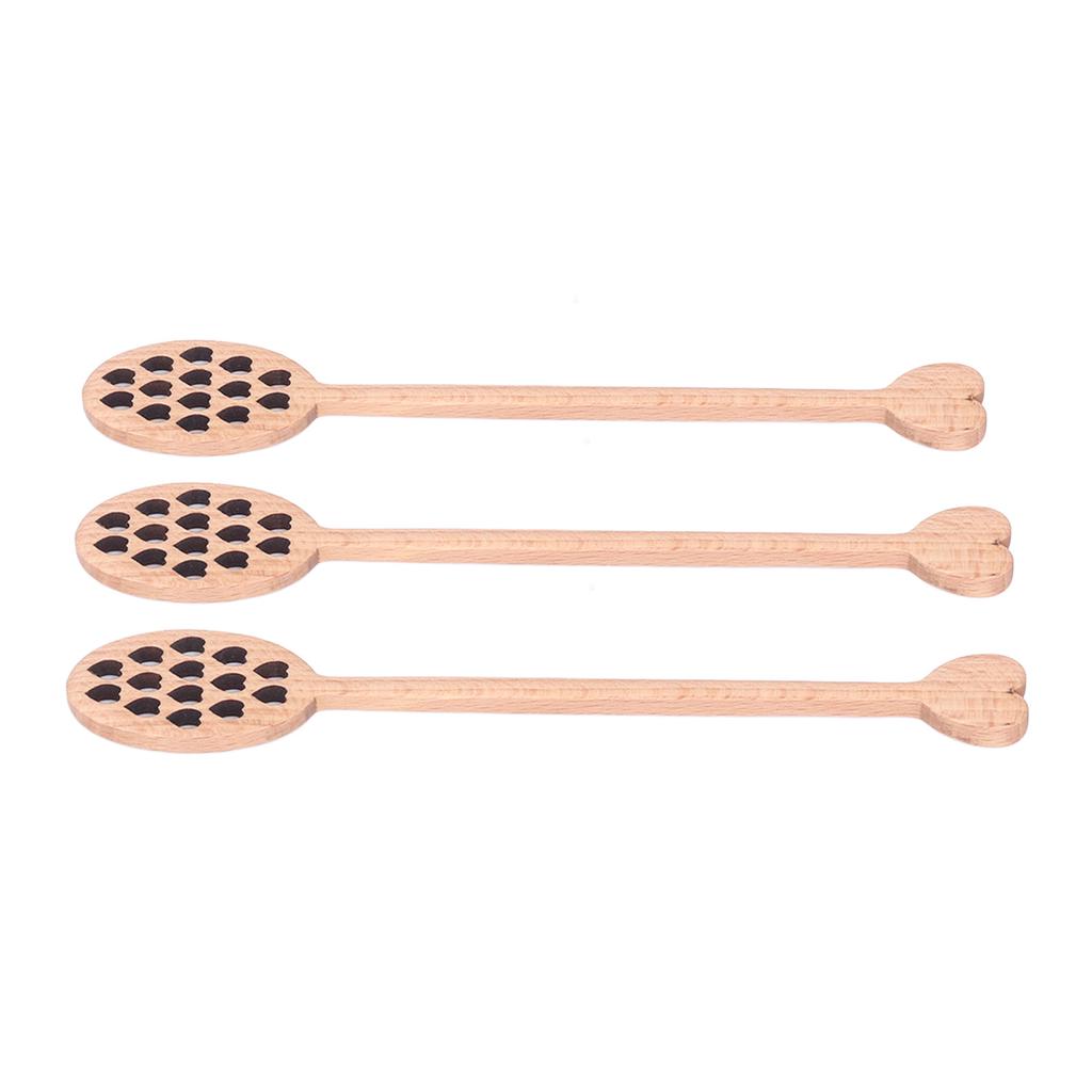3pcs Wood Honey Dipper Heart Pattern Chinese Cherry Wooden Mixing Stirrer Kitchen Tableware