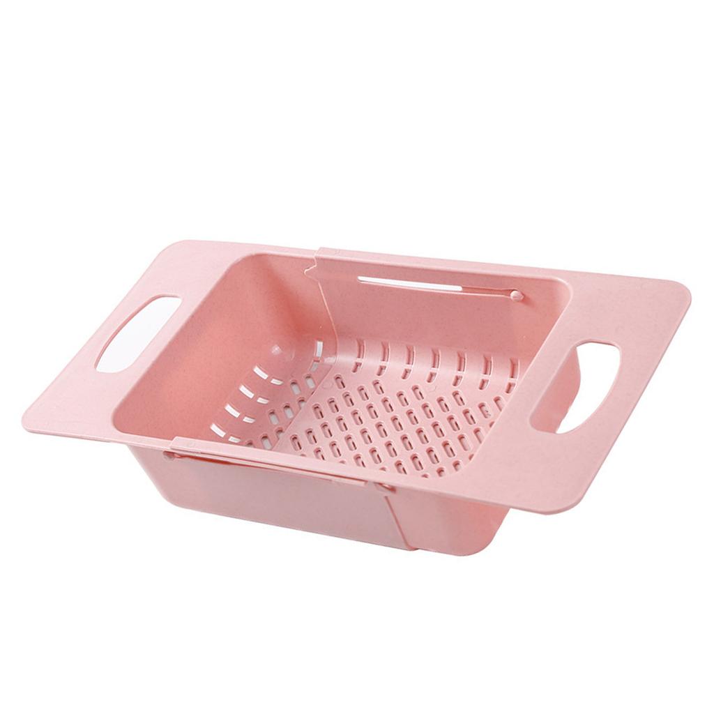 Sink Colander Strainer Basket Household Plastic Stretchable Bowl Drain Storage Rack for Kitchen Pink