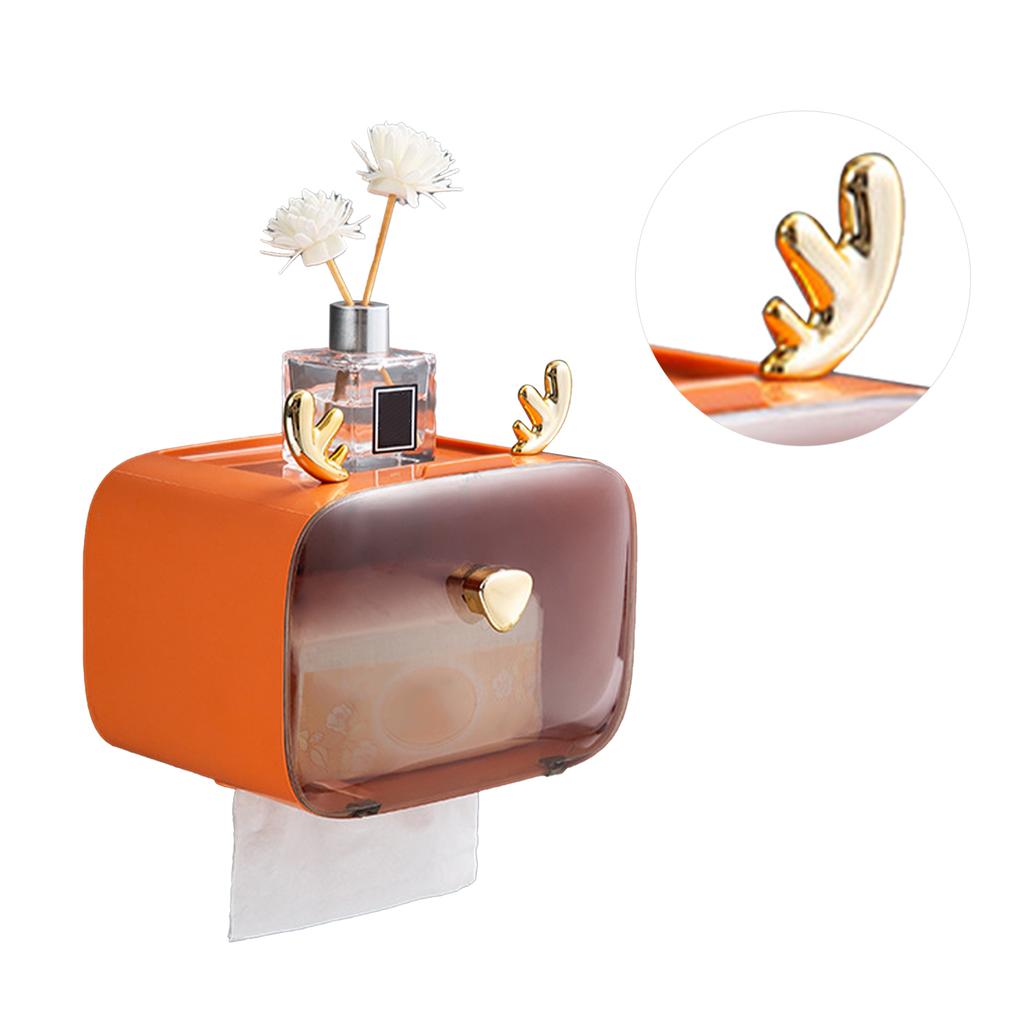 Waterproof Toilet Paper Holder Cute Rod Antlers Transparent Window Adjustable Hanging Wall Mounted Tissue Box