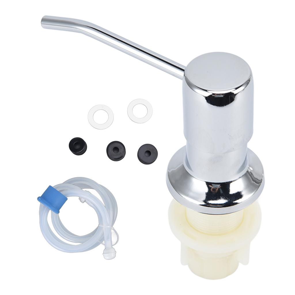 Sink Soap Dispenser Kit with Silicone Tube Stainless Steel Electroplating Sink Liquid Pump Head for Kitchen