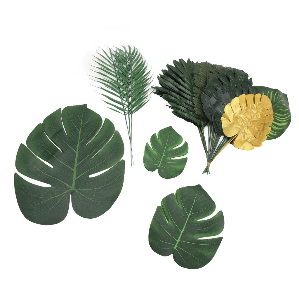 70PCS Artificial Palm Leaves 10 Kinds of Plants Simulation Tropical Plant Leaves for Hawaiian Party Decoration