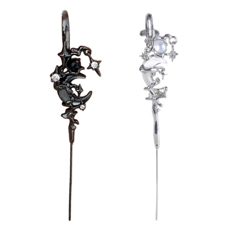 Elegant Star and Moon Diamond Earrings Ear Needle Diagonals Ear Studs Stylish Piercing Ears Jewelry for Fashion Lovers