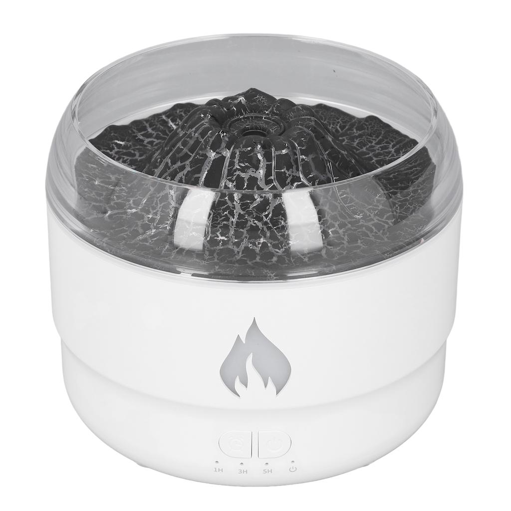 2. 7 Color Flame and Timing: Press the left button to choose the flame modes (Stable flame, 7 colors changing, cool mist), press the second button to turn on off the diffuser, and press the right button to set the work time. (1h, 3h, 5h)