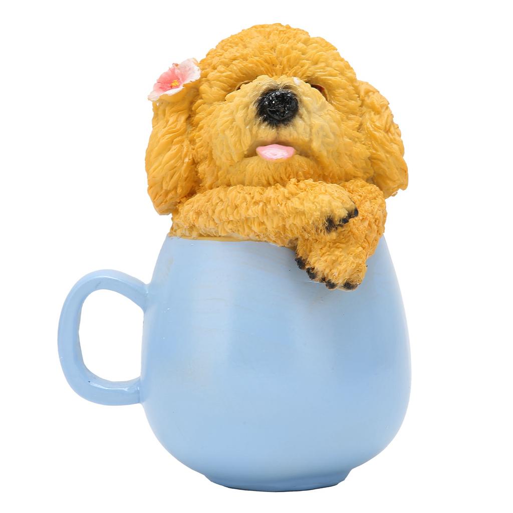 Originality Cup Dog Ornament Synthetic Resin Crafts Garden Decoration for Home YardYellow