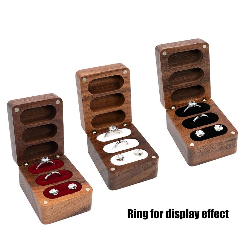 Rings Container Solid Walnut Wood Wedding Ring Storage Organizer Jewelry Box with Velvets Interior for Engagement