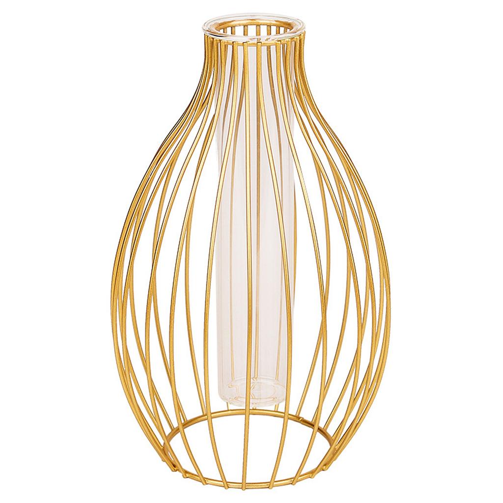 Metal Frame Vase with Clear Glass Tube Hydroponic Container for Desk Decoration