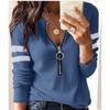 JKASHDK Women's Fashion Casual Spring Autumn Stripe Print Long Sleeve V-Neck Blouses & Shirts