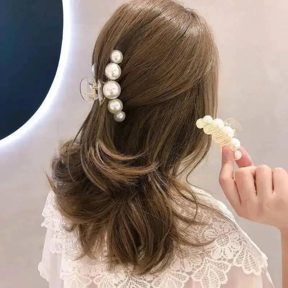 Korean Hairpins Elegant Pearl Hair Claws Pearl Claw Clips Shark Jaw Clamps For Women Girls Fashion Hair Styling Headwear Tool