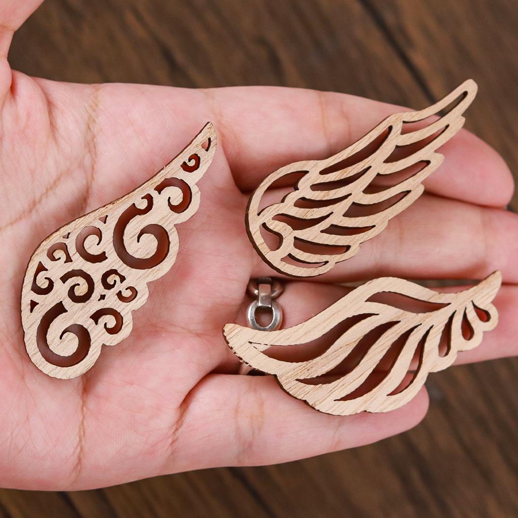 40Pcs/bag 4 Styles DIY Angel Wings Wooden Chips Decorative Embellishments Crafts Scrapbook Hand-made Graffiti Button Accessories