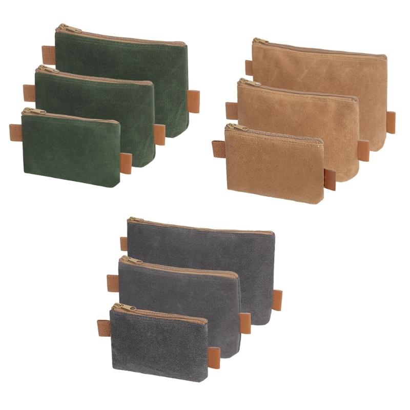 3 Piece Multipurpose Canvas Tool Bag Heavy Duty Zipper Pouch Tool Organizers Set for Hardware Storage and Organization