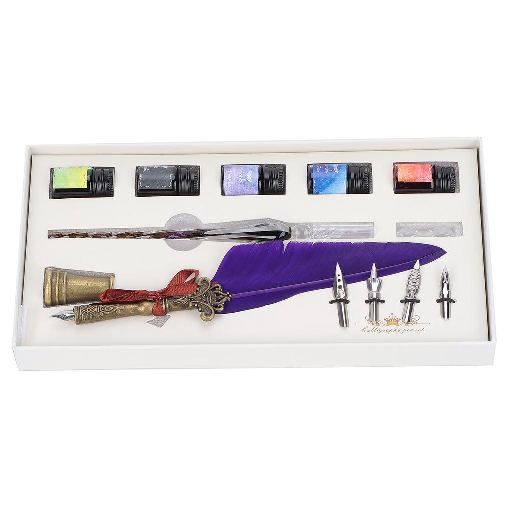 Calligraphy Pen Set Glass Ink Feather Fountain Pen with Replaceable Nib Writing Gift Box KitSP118014 Purple