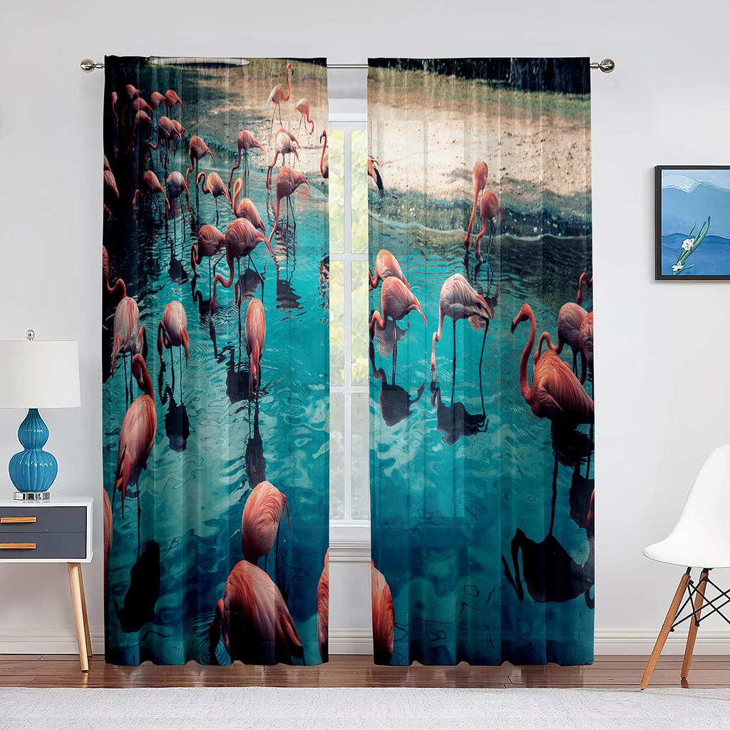 Flock Pink Flamingos In The Water Sheer Voile Curtains for Living Room Bedroom Kitchen Window Drapes Chiffon Tulle Curtain Decor