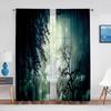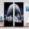 Night Sky Full Moon and Foggy Clouds with Sea Ocean Tulle Curtains for Living Room Bedroom Sheer Voile Kitchen Window Curtain