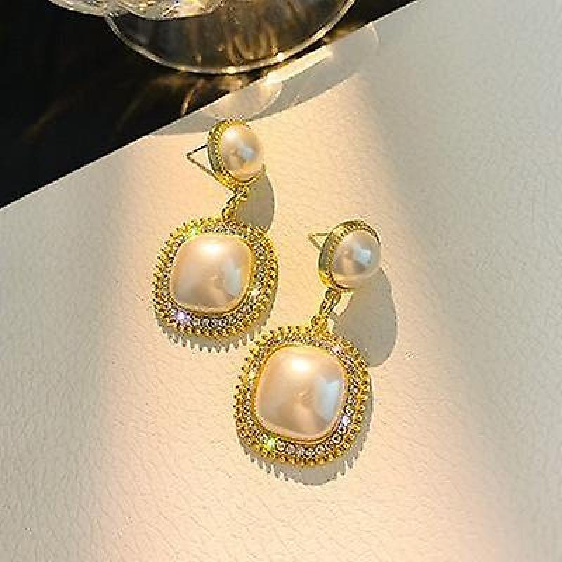 Baroque-style Pearl and Rhinestone Gold Earrings