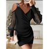 JKASHDK Women's Fashion Spring Fall Solid Color Print Long Sleeve V-Neck High Waist Casual Dresses