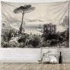 European Port Black And White Wash Painting Tapestry Wall Hanging Pine Psychedelic Bohemian Hippie Bedroom Decor