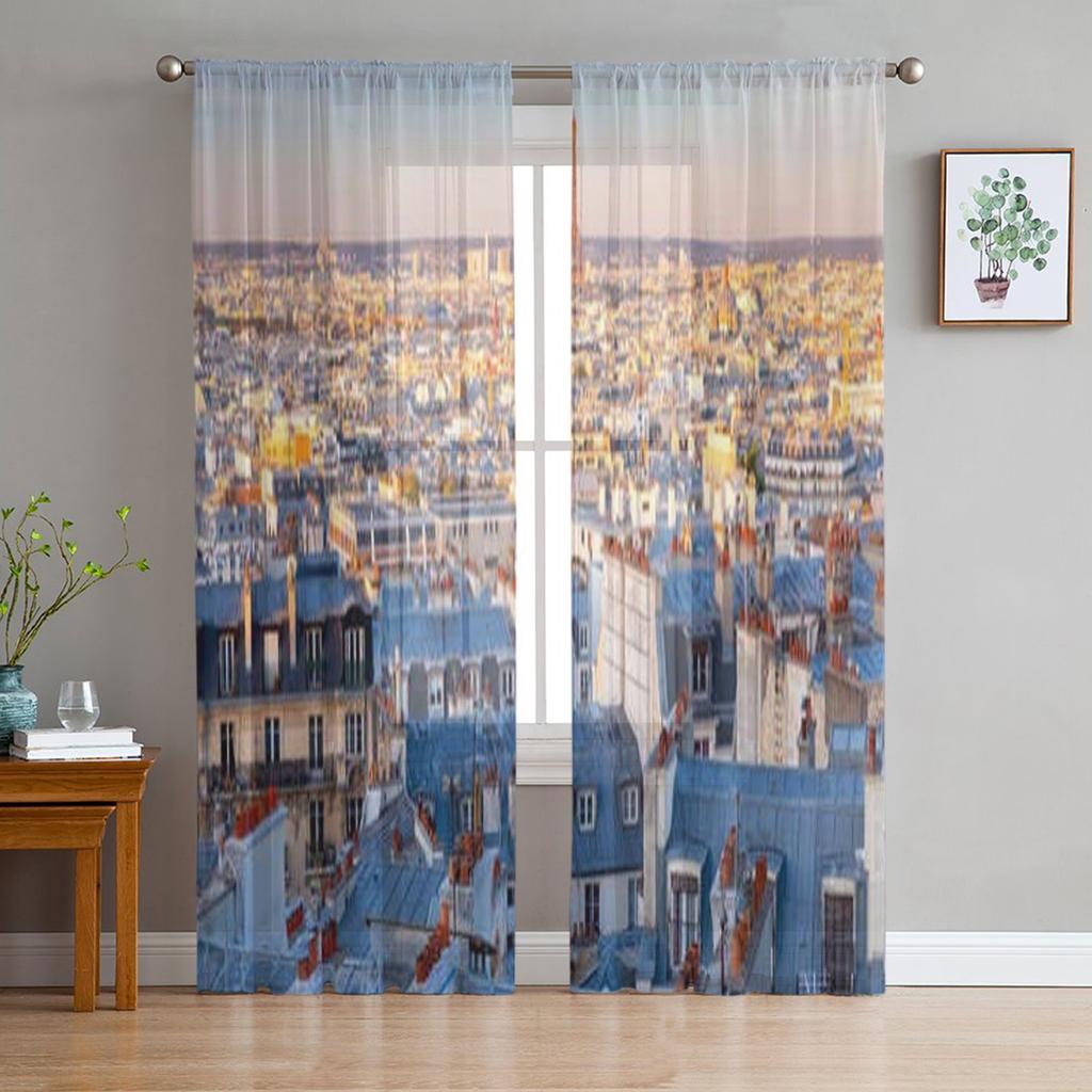 Aerial View Of Paris City Skyline With Facades Tulle Sheer Curtains for Living Room Kitchen Decoration Voile Organza Curtains