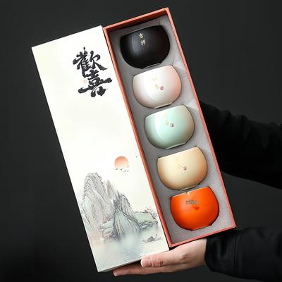 Gift Box & Five Elements Gift Box Kiln Change China Ceramic Tea Cup Porcelain Kung Fu Cups Set Pottery Coffee Mug Tableware Cup