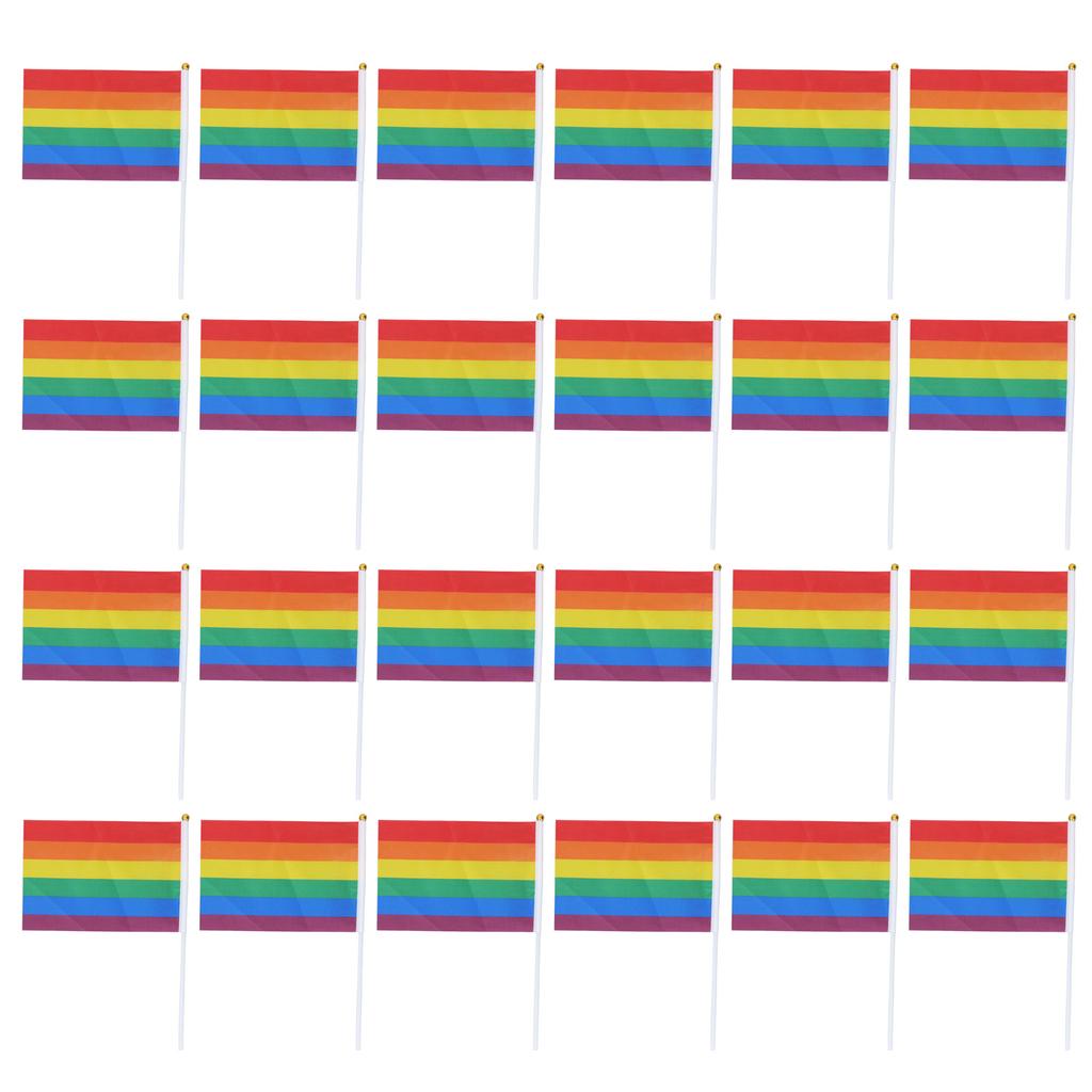 24Sets Mini Pride Flags Color Lasting Small Lightweight Gay Pride Flags for Festival Party Holiday Parading Decorations