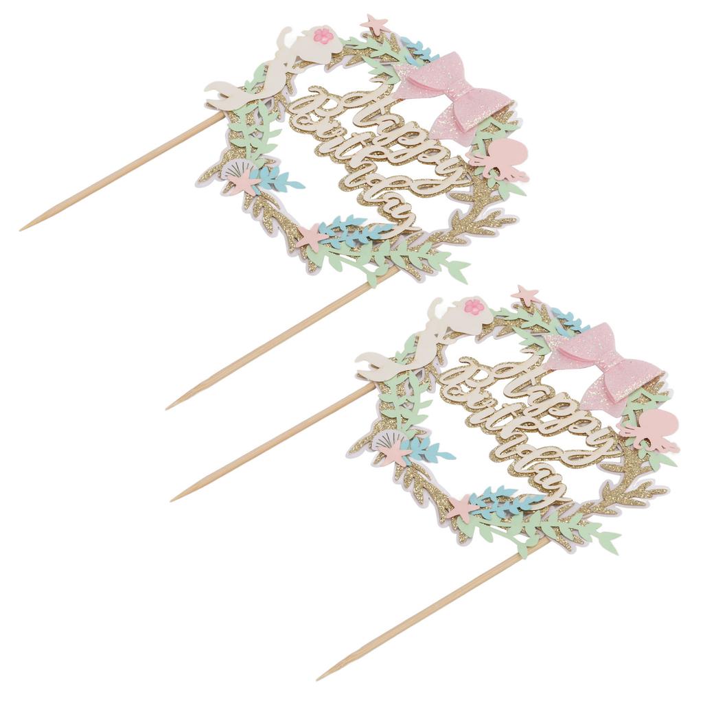 2Pcs Cake Toppers Pink Bow Sparkling Exquisite Safe Degradable Happy Birthday Cake Decoration