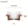 KEMORELA Striped Glass Bowl with Wooden Stand Scratch-Resistant Round Salad Fruit Dessert Display for Living Room