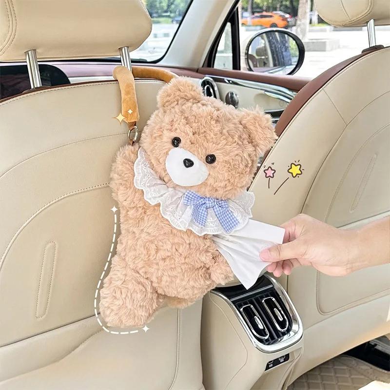 Car Universal Tissue Box Pet Cute Creative Hanging Tissue Holder Plush Vehicle Tissue Case Paper Box Cute Car Accessories