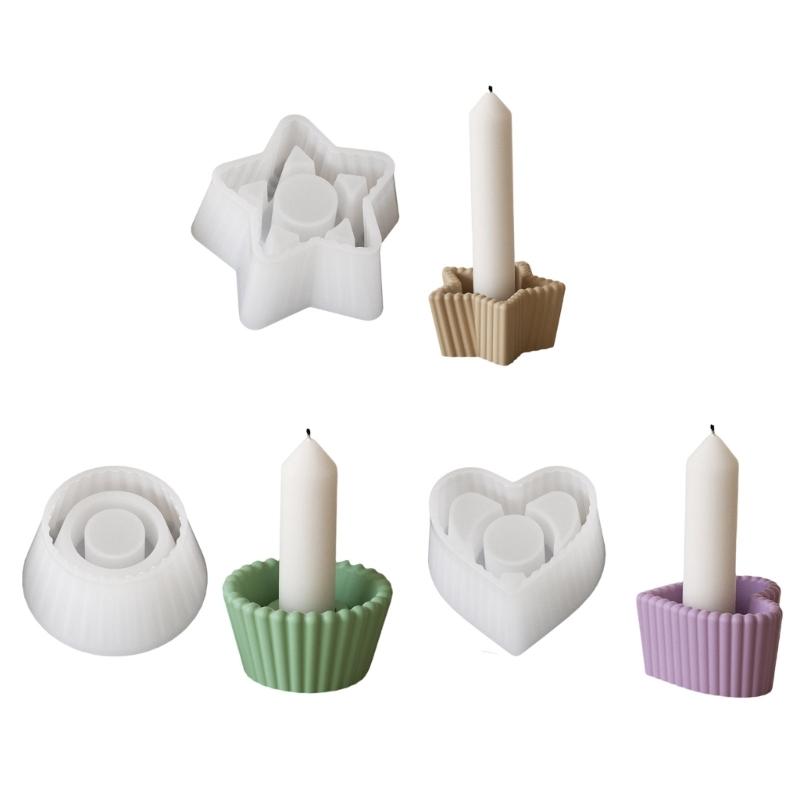 Create stunning candle holders with our high quality silicone molds, designed for easy release and durability, perfect for crafting unique heart, star and round shapes.