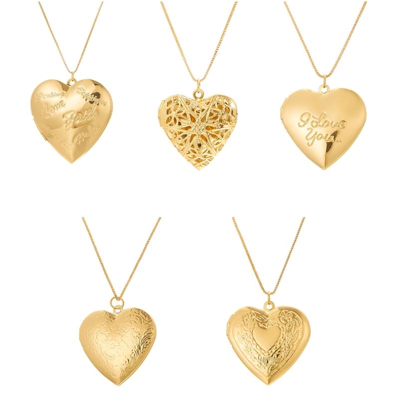 Vintage Heart Locket Necklace With Engraved Floral Designs Adjustable Chain Photo Pendant Jewelry Accessory for Women