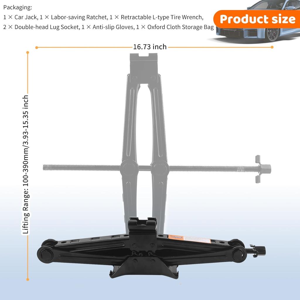 2 Ton Portable Car Jack Kit with Tire & Ratchet Wrench, Lifts 3.93–15.35 Inch