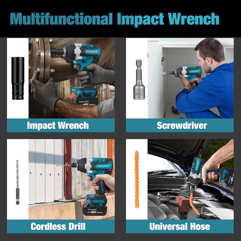 Cordless Impact Wrench, 740Ft-lbs, 4-Mode Electric Driver, 2 Batteries, Charger, 5 Sockets, for Car, Home, Truck, RV, Mower