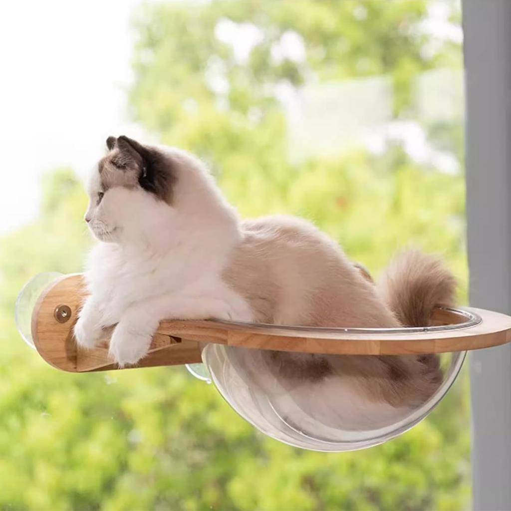 Cat Furniture, Rubber Wood Transparent Capsule Kitten Wall Shelves - Premium Kitty Bed for Sleeping, Playing, Climbing